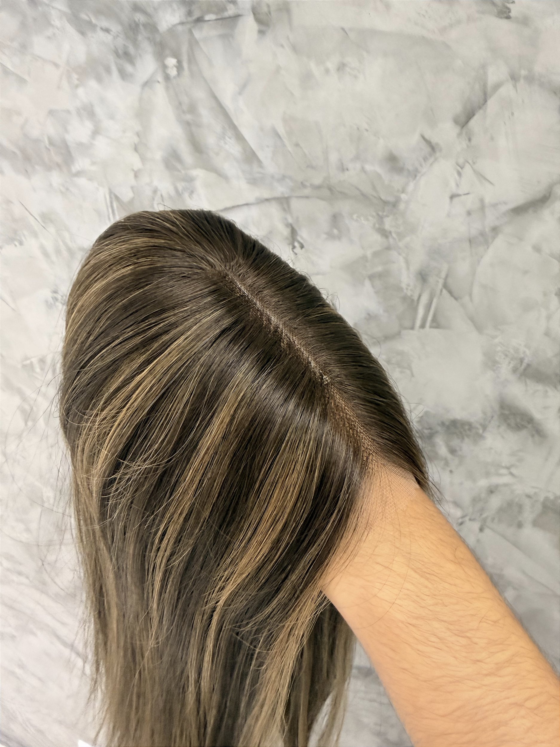 Prótese capilar feminina de cabelo humano monofilamento fino com borda fina de micropele e presilhas, confeccionado em cabelo Remy europeu M10
