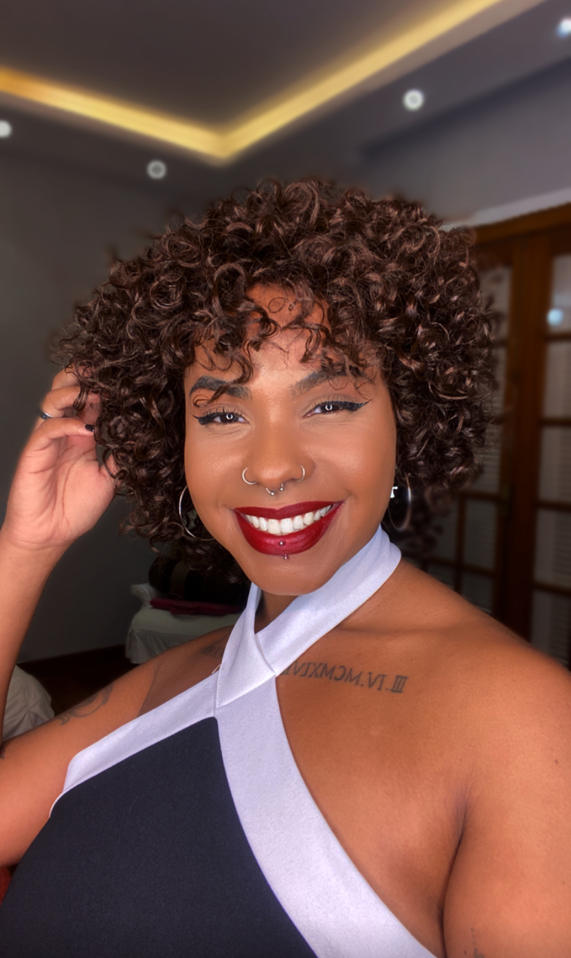 Peruca Cabelo Humano Cacheada Nara Castanho