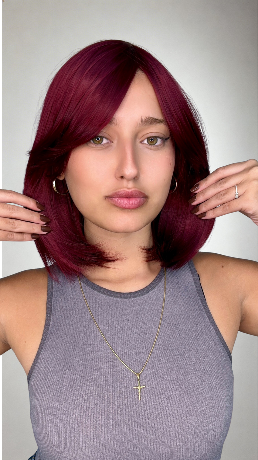 Peruca Fibra Futura Liso Franja Odete Marsala