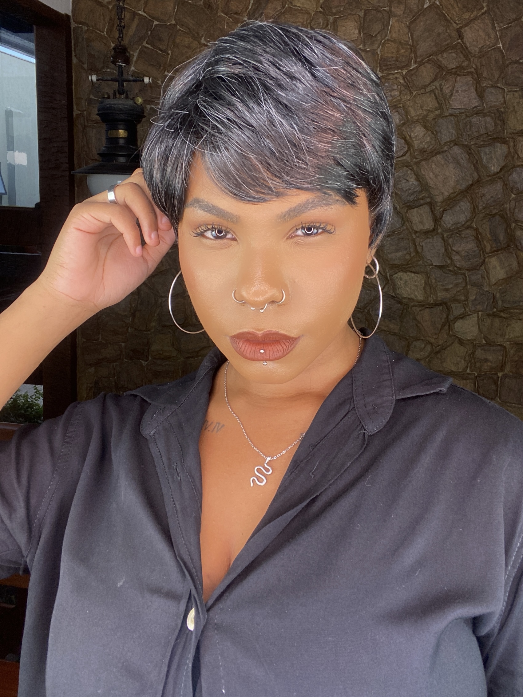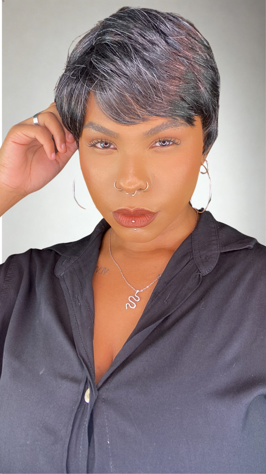 Peruca Fibra Orgânica Pixie Daniela Mechas Grisalho 280