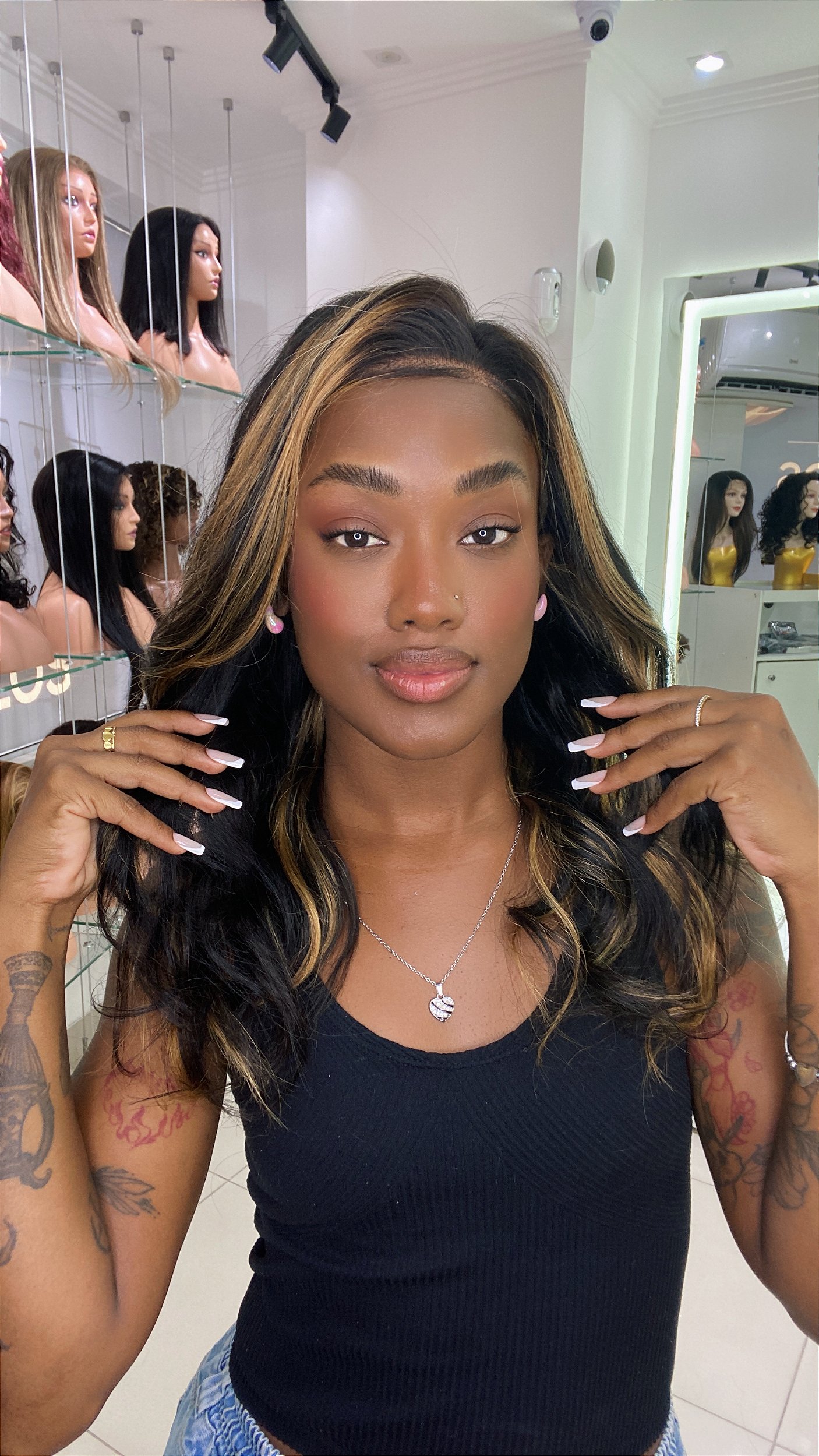 ➡️ Peruca Lace 360° STRAP Cabelo Humano 55cm Mechas 1B/27