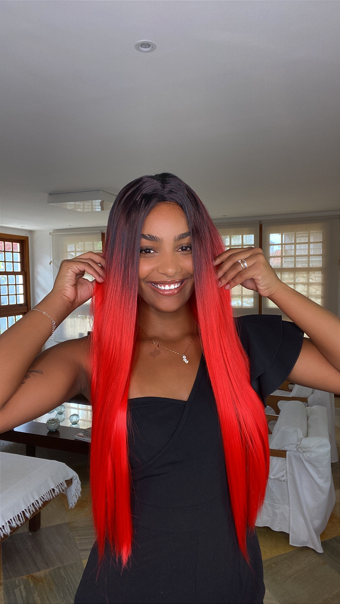 Peruca sintetica fibra futura Juliana Sem Franja Vermelho