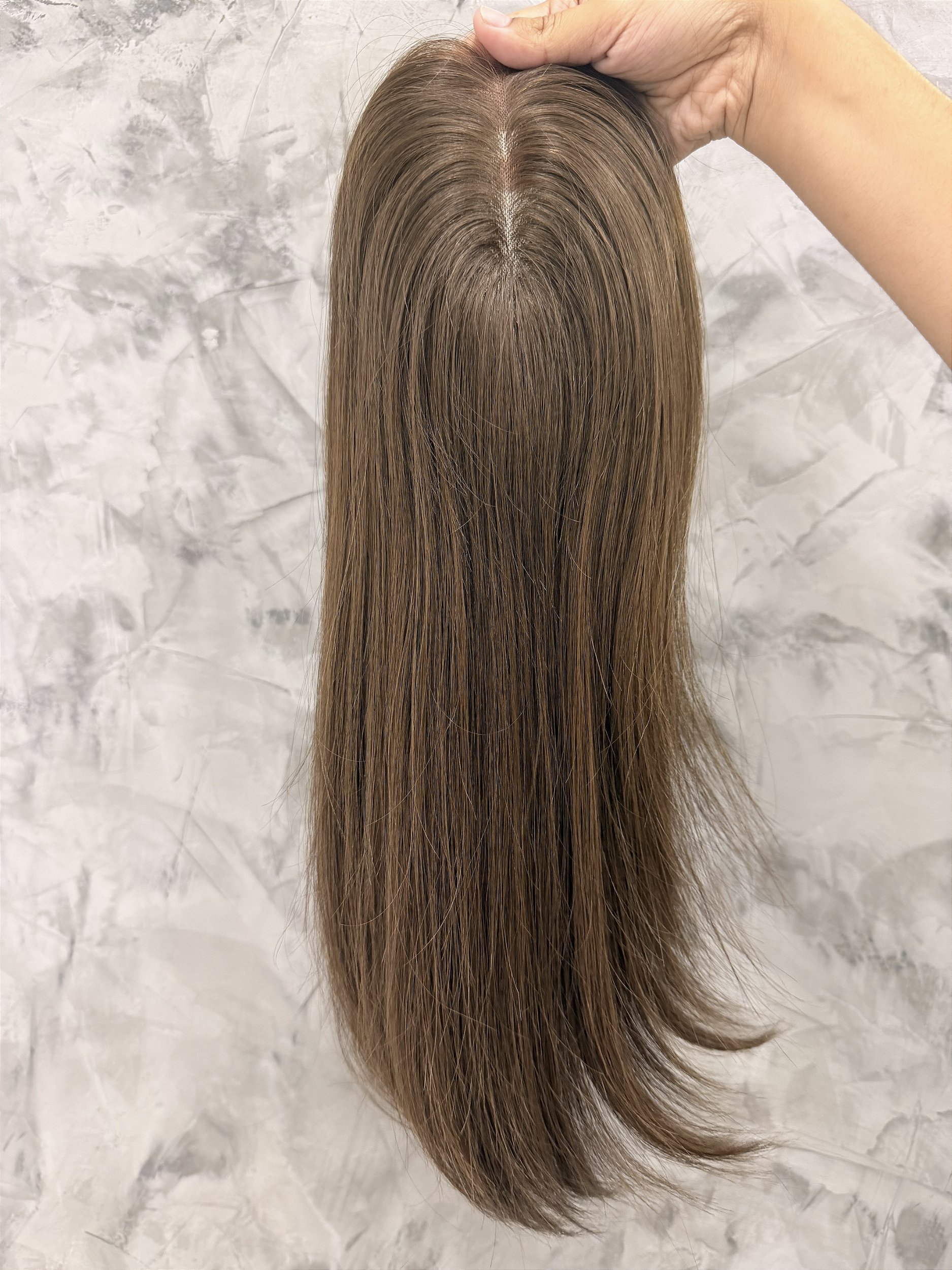 Prótese capilar feminina de cabelo humano monofilamento fino com borda fina de micropele e presilhas, confeccionado em cabelo Remy europeu M10
